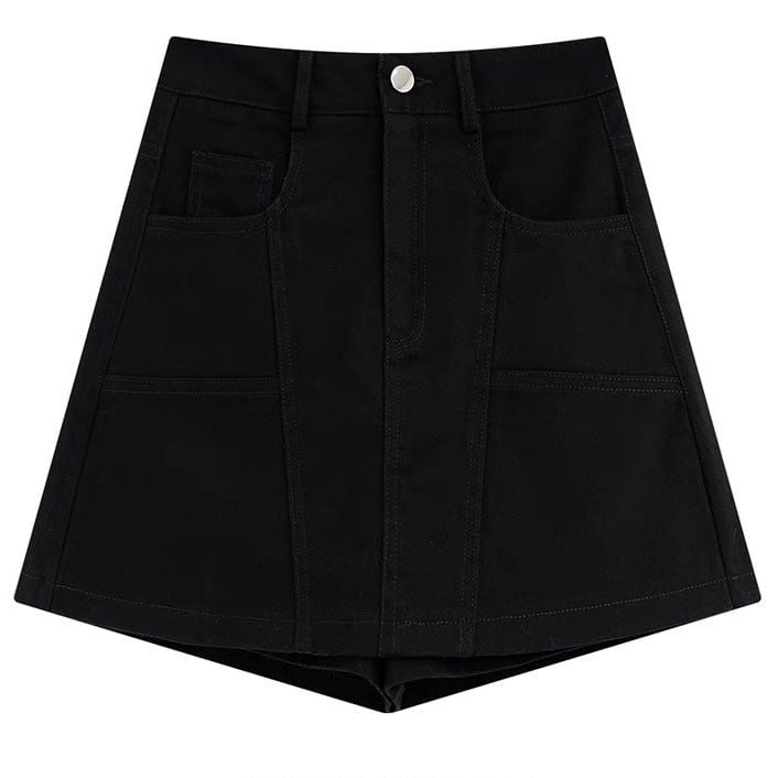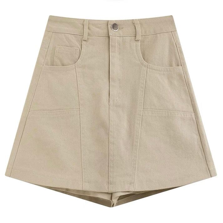 大きめのフロントポケットとAラインシルエットが、腰回りをすっきり見せてくれます。