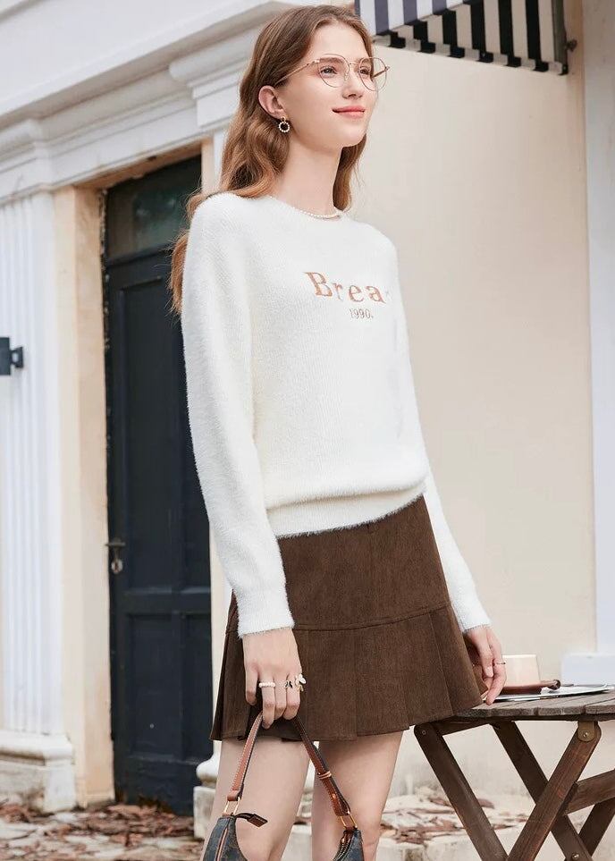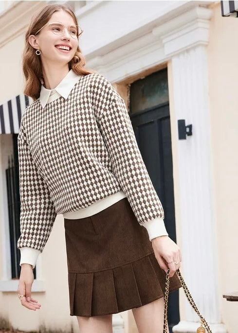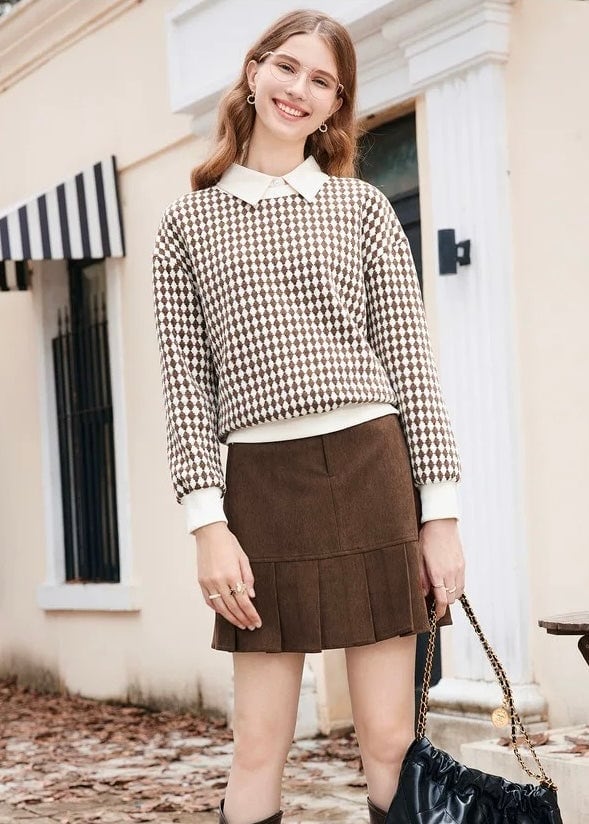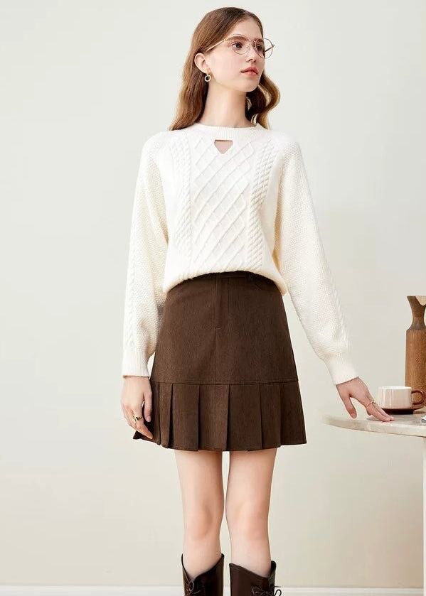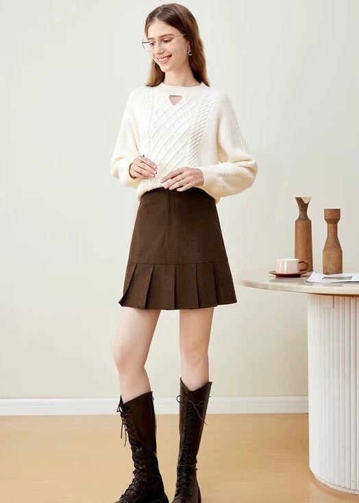 上品でクラシカルな雰囲気漂うブラウンのプリーツスカート。