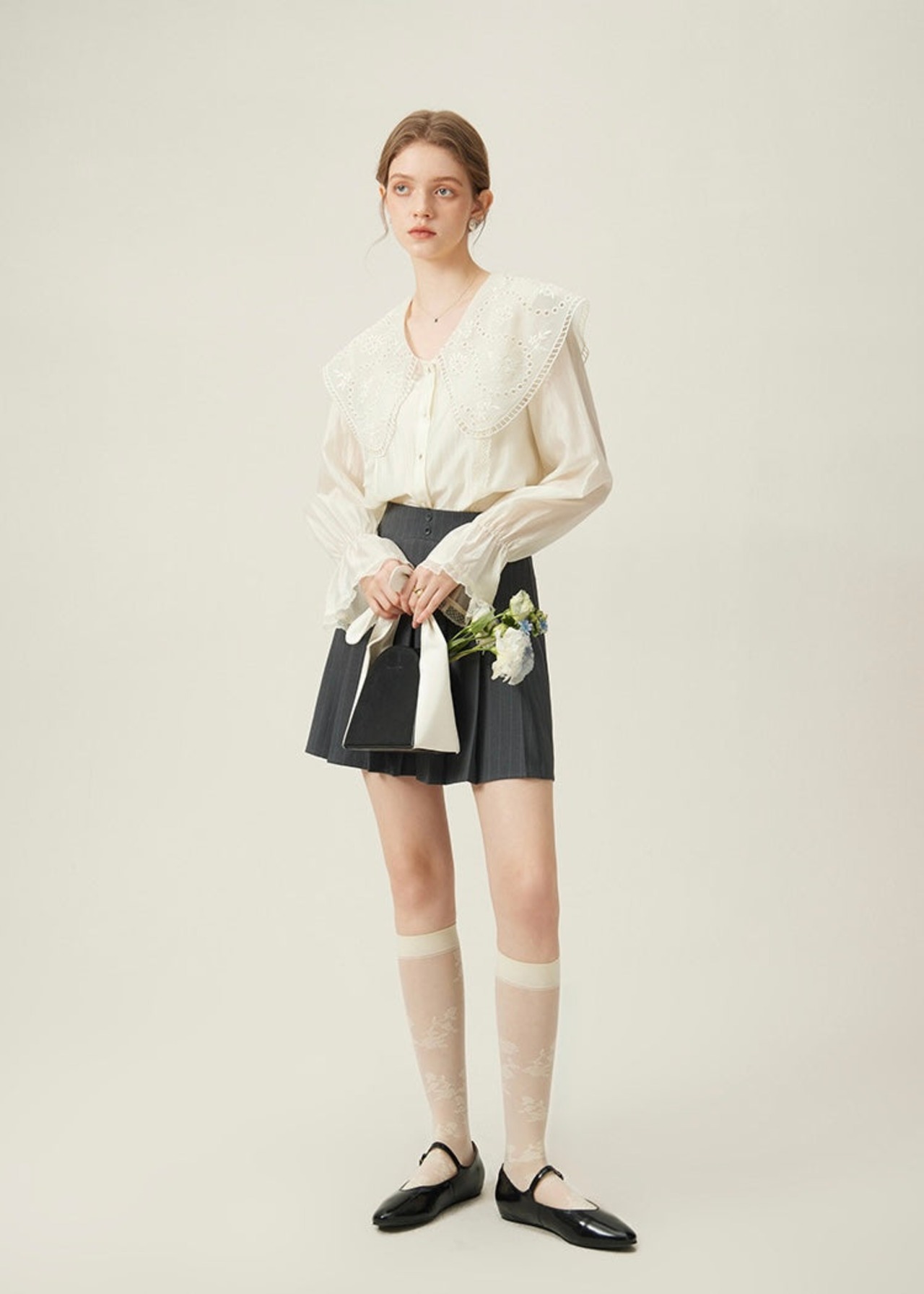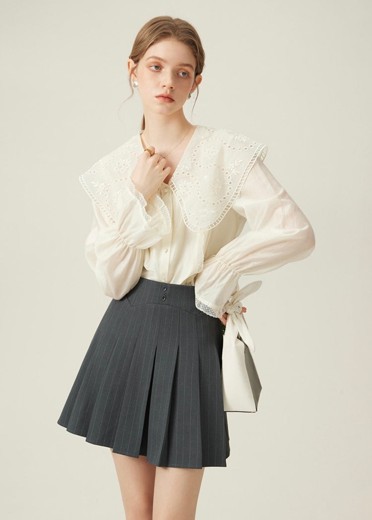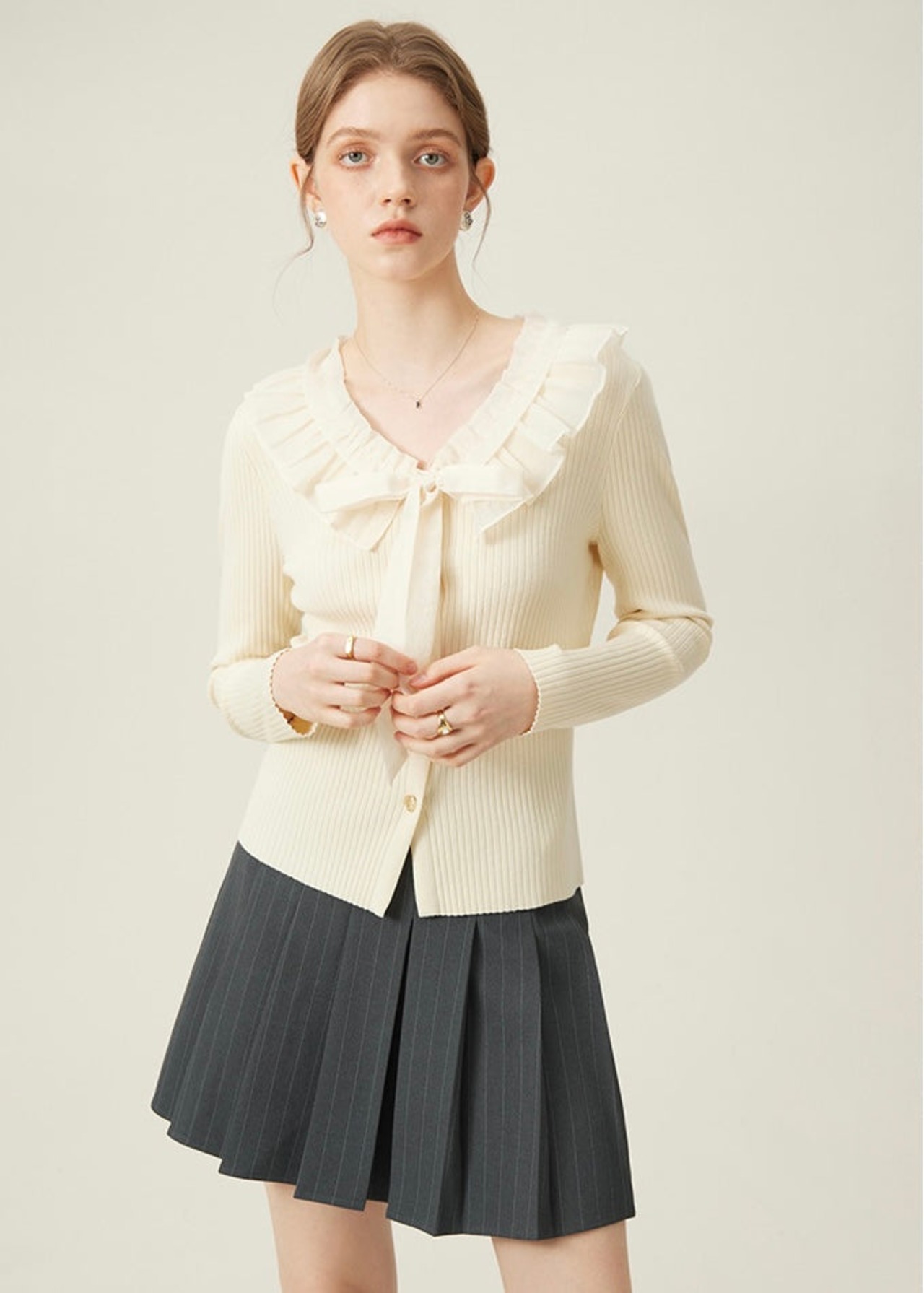 トップスを選ばず、シンプルからガーリーまで幅広く活躍できるアイテムです。
