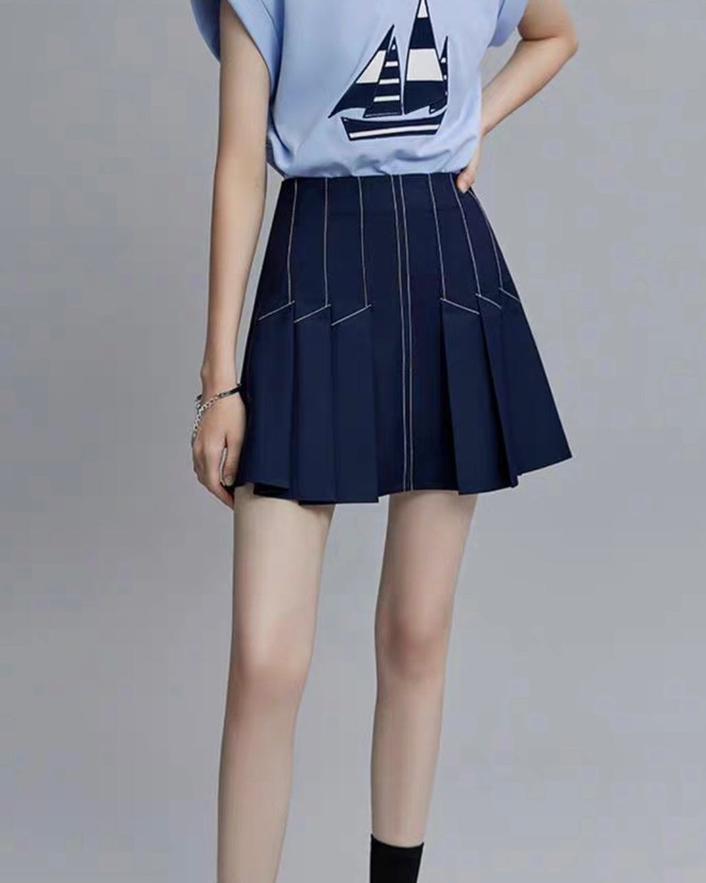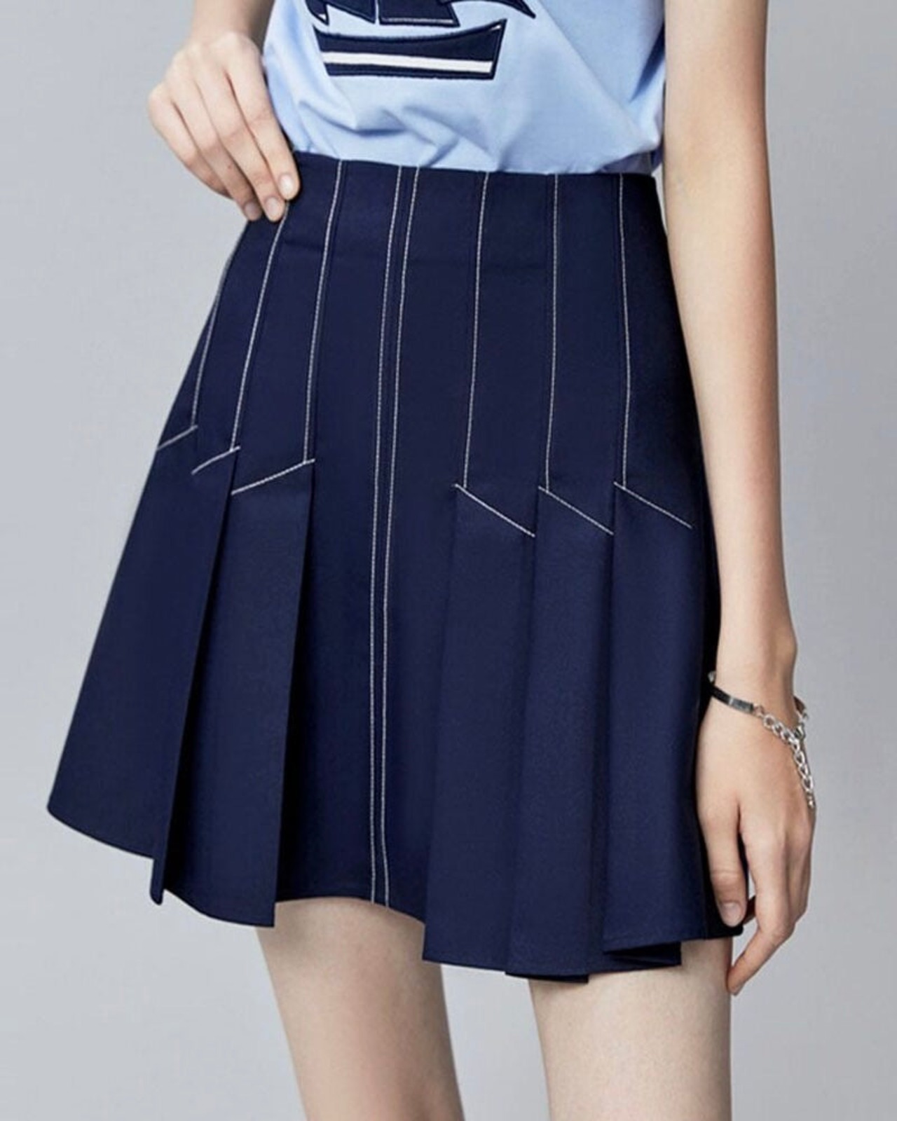 ライン状に入ったステッチデザインがガーリーな、ラインステッチミラプリーツスカート。