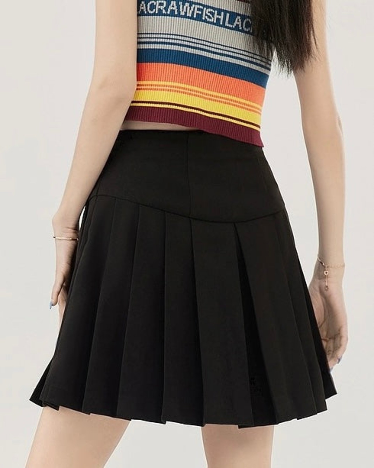 広がりを程よく抑えたプリーツ設計で、上品な揺れ感を楽しめるアイテムです。