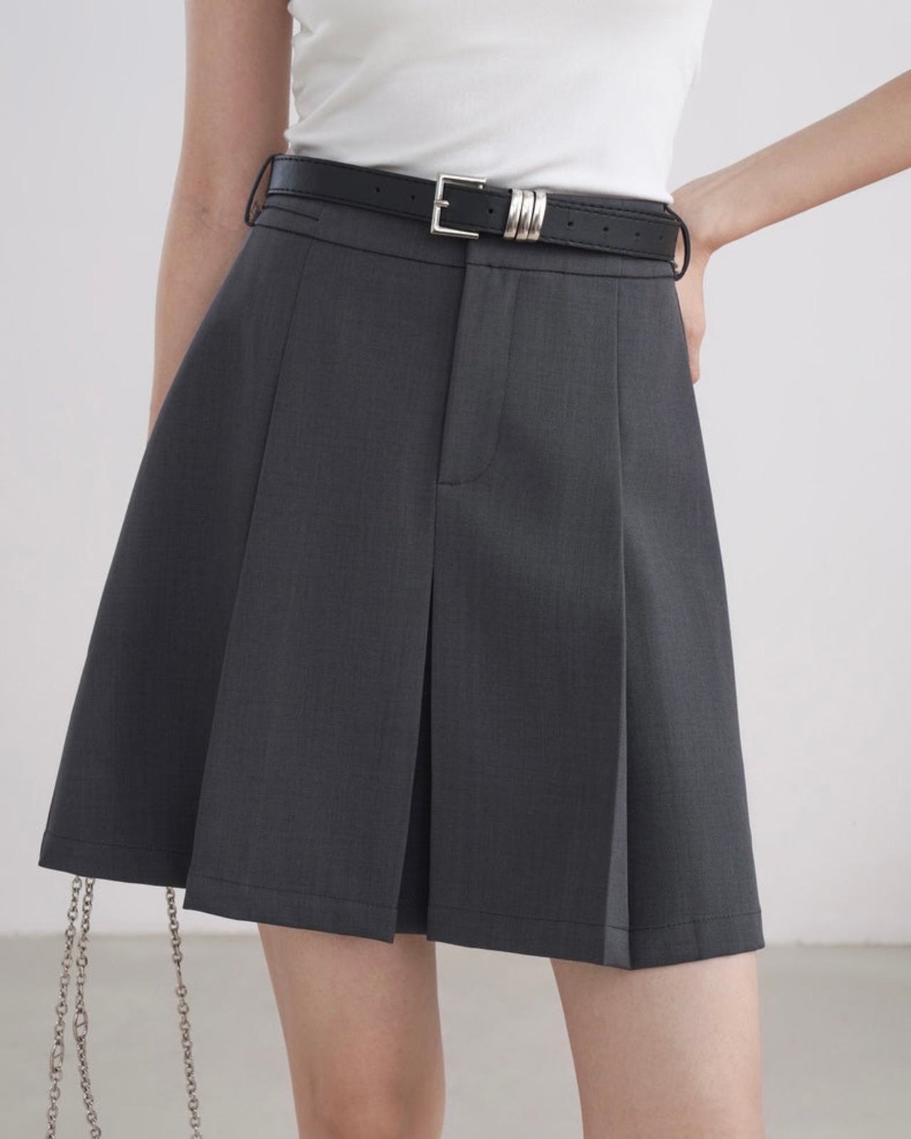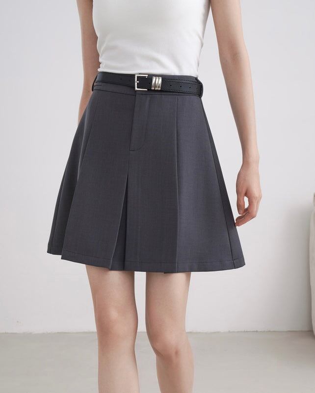 ざっくりワイドなプリーツで、かっちりとした着こなしができるプリーツスカートです。