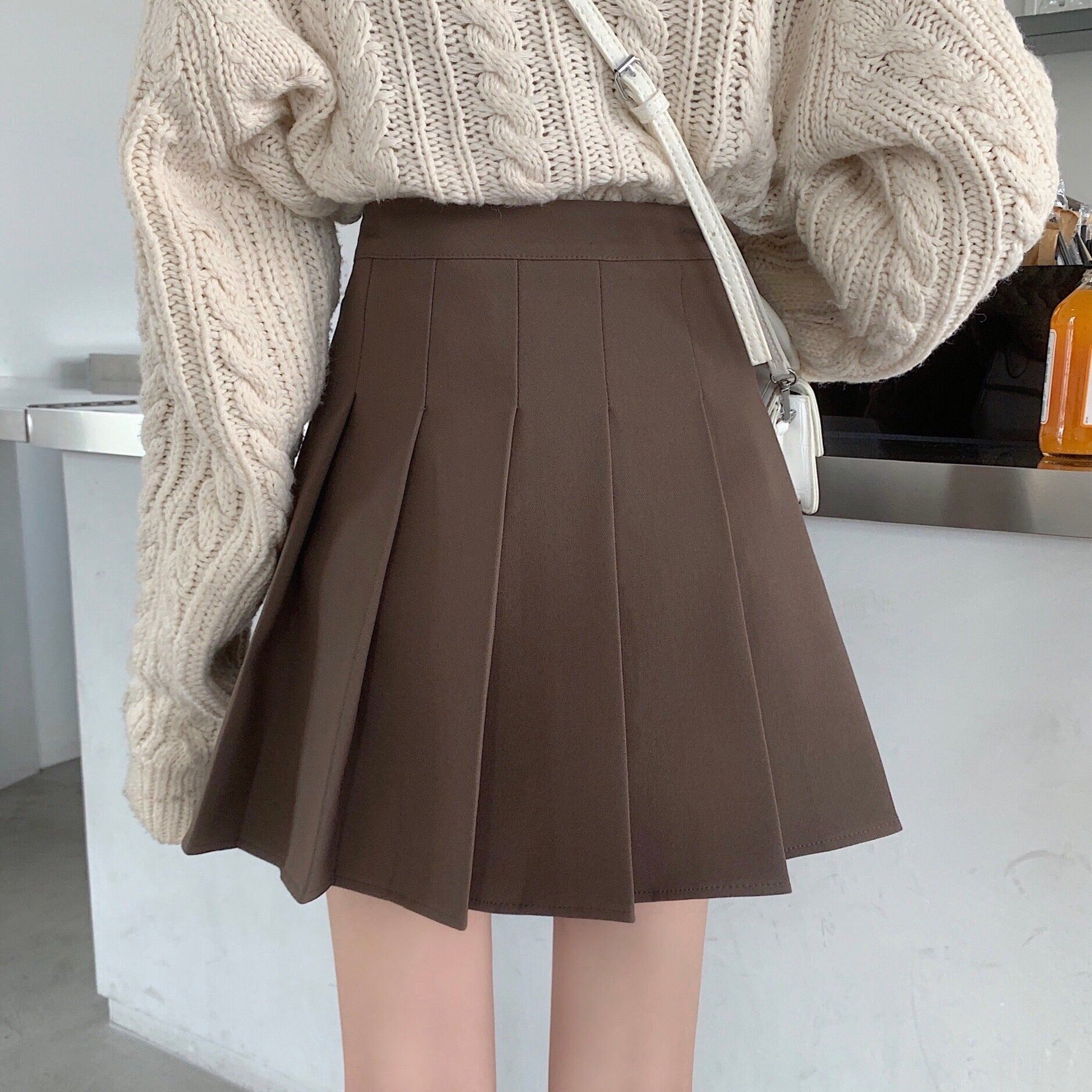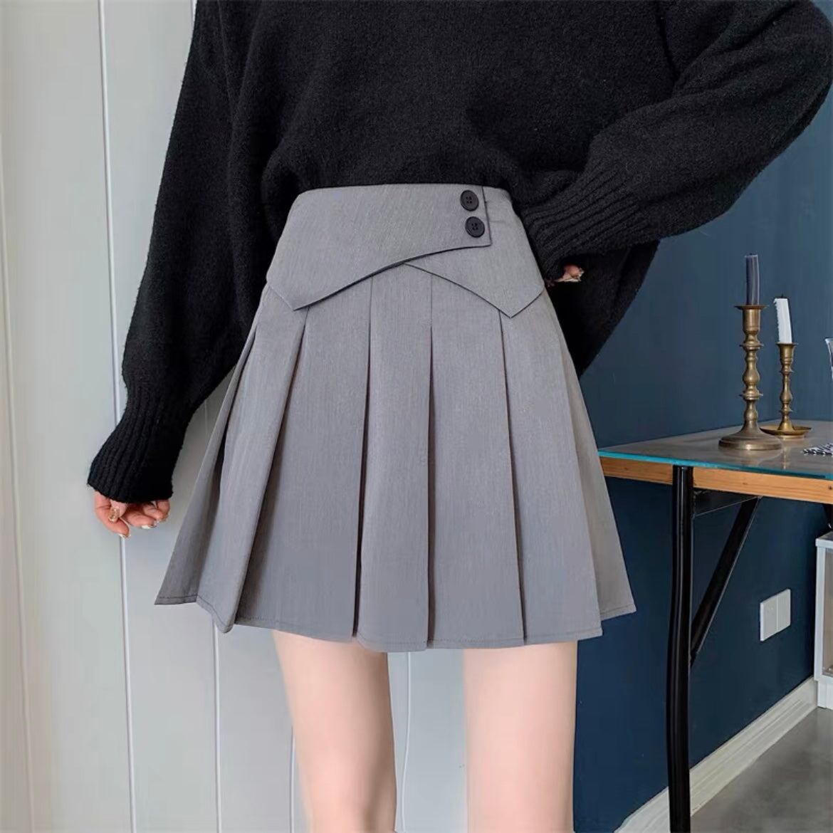 ウエスト周りのデザインが特徴のプリーツスカート。