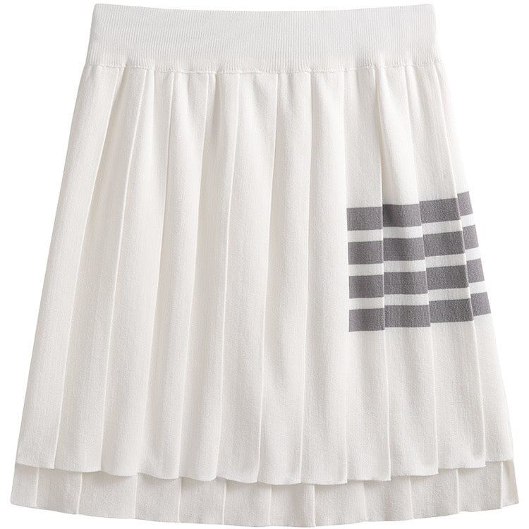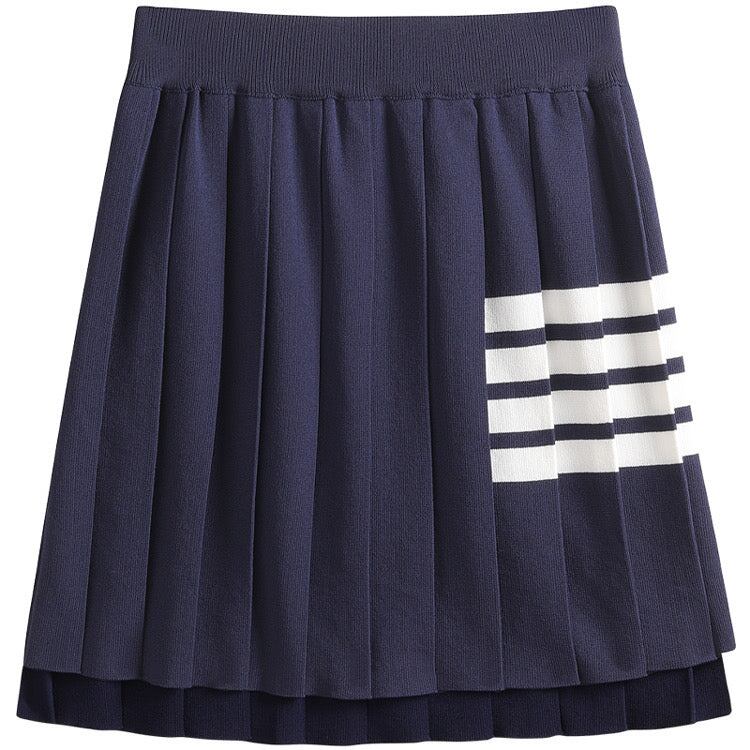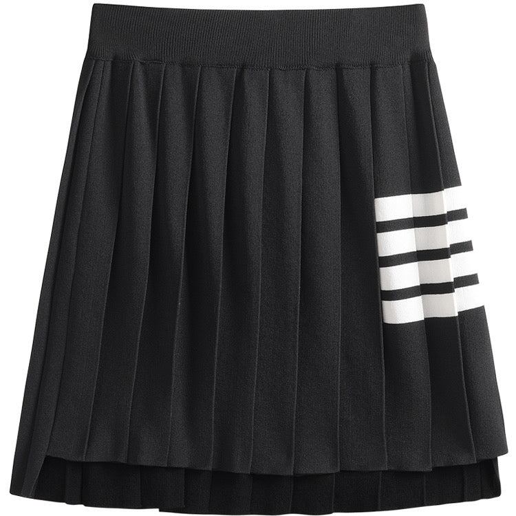 いろいろなアイテムに合わせやすいライン入りプリーツスカート。