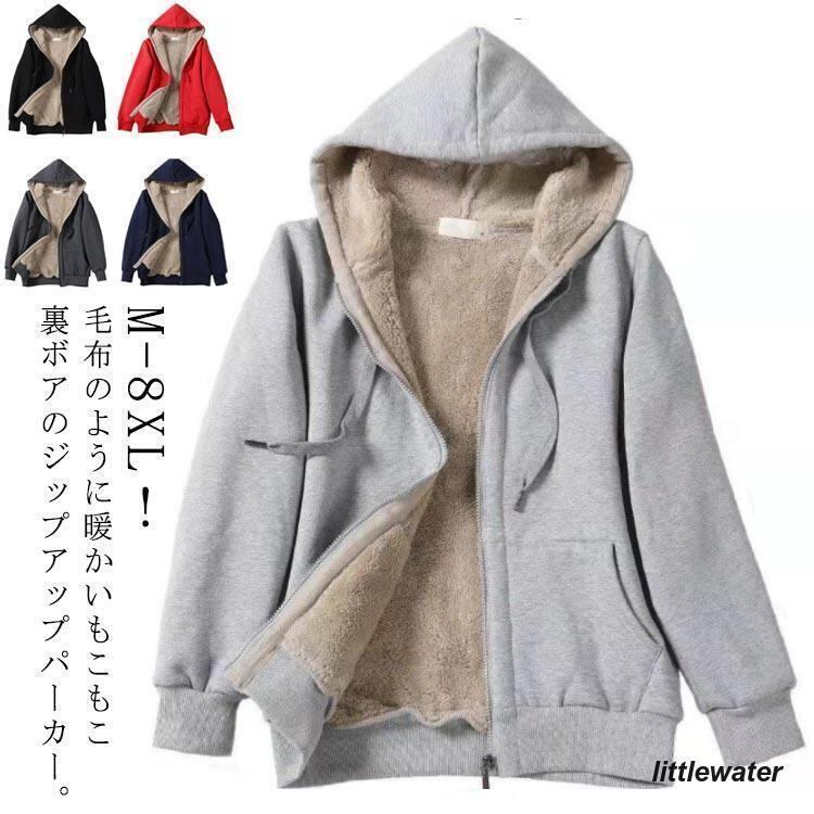 パーカー レディース メンズ 厚手 裏ボア 裏起毛 アウター ジップアップ ボア パーカー フード付き